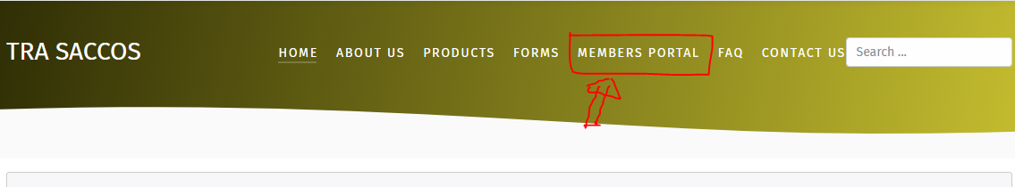 → Members Portal inapatikana kwenye Website ya Chama: www.trasaccos.co.tz baada ya kuifika Website unabonyeza kiunganishi Members Portal kama unavyoona hapa chini:
